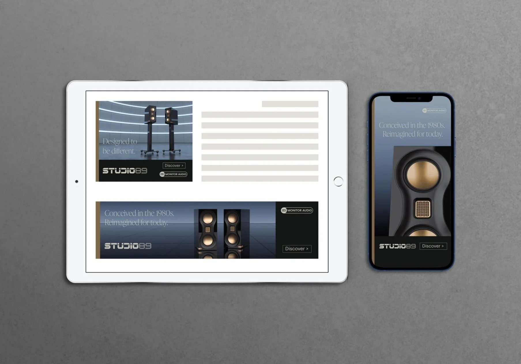 Studio 89 was conceived as a special edition loudspeaker, drawing its name from a flagship heritage product in Monitor Audio’s history, now reimagined for a modern audience. To honor the late 80s—the era when the original Studio product line debuted—80s-inspired branding was developed for the new range. The result is a design that blends retro flair with a contemporary touch, creating a distinctive fusion of retro and modernity.